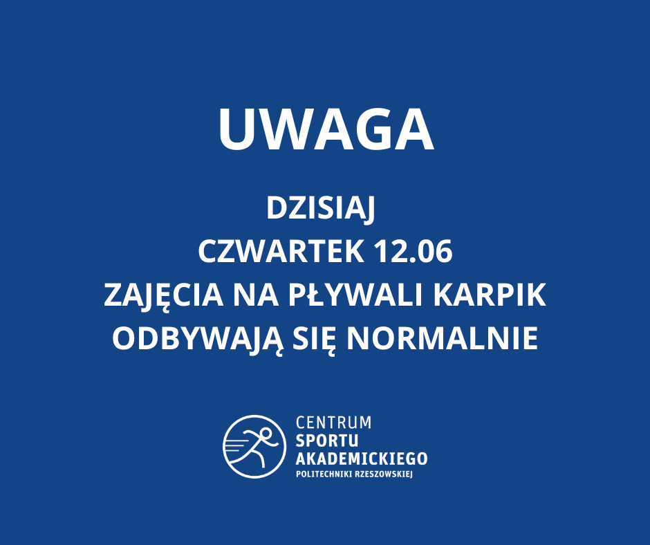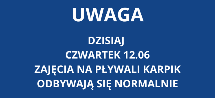 Informujemy, że awaria została usunięta i dzisiejsze (czwartek 12.06) zajęcia na pływali Karpik odbywają się normalnie